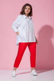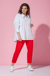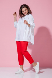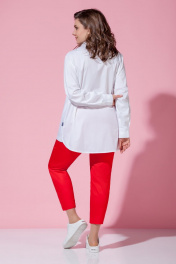 Стильная хлопковая рубашка прямого силуэта со спущенной линией плеча. Рукава длинные, по низу притачные манжеты. Воротник рубашечный на отрезной стойке, застежка центральная на планку на петли и пуговицы. В боковых швах обработаны внутренние карманы. На планке выполнена оригинальная вышивка-«глаз». Спинка длиннее полочки. Длина спинки - 85 см. Длина рукава – 64 см.
