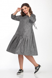 Платье свободного кроя с длинными рукавами и завязками Anna Majewska 1420 темно-серый