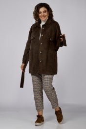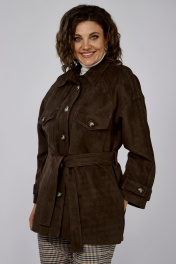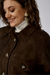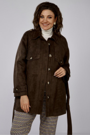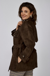 Коричневый удлинённый жакет из замшевой ткани с декором и клапанами Anna Majewska 1526В