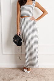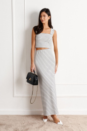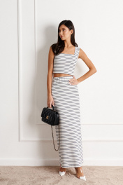 белая юбка из трикотажа с полосой, прилегающего кроя ANNETE A1140