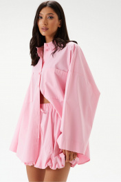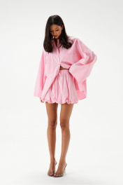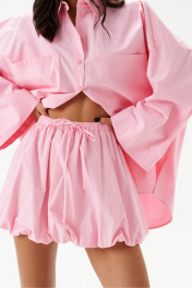 Юбка-мини. Выполнена из хлопковой ткани нежно-розового цвета. Характеристики: пояс на резинке с кулиской, подкладка, низ изделия на резинке. Длина 41 см