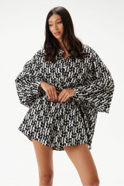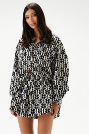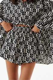 Шорты выполнены из текстильного полотна с абстрактным принтом. Характеристики: прямой свободный крой, пояс на резинке, в боковых швах карманы. Длина шорт по боковому шву 29 см.