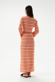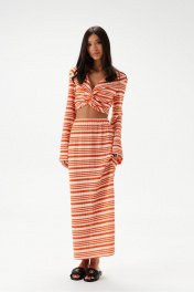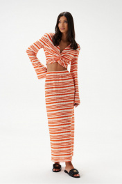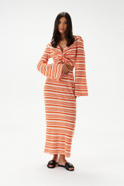 Юбка прямого кроя. Выполнена из мягкого вязаного трикотажа.Характеристики: прямой крой, пояс на резинке, эластичная, низ изделия не обработан. Длина по боковому шву 98 см.
