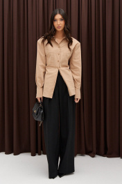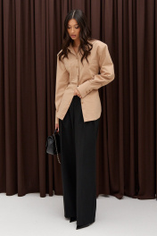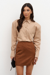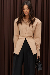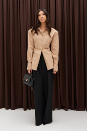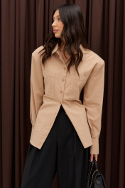 Рубашка деловая из бежевого текстиля с застежками на пуговицы ANNETE A2023