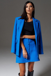 Юбка полуприлегающего силуэта выполнена из фактурного полотна насыщенного синего цвета. Характеристики: полуприлегающий силуэт, подкладка, по переду функциональные пуговицы, пуговицы декорированы тканью основного изделия Длина 45 см.