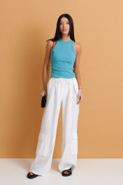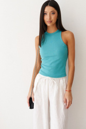 Топ прилегающего силуэта выполнен из фактурного полотна. Характеристики: полуприлегающий силуэт, плавный вырез горловины. Длина по спинке 51 см.