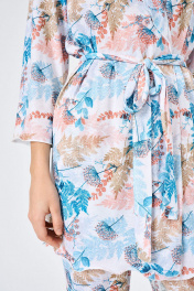 Очаровательный комплект для дома, созданный специально для женщин, обладает уникальным сочетанием нежности и уюта. Он словно воплощение мечты о комфорте и стиле одновременно. Благодаря использованию хлопка в изготовлении этой особой одежды, она приобретает особое очарование и легкость. Пижама – это не просто комплект из туники и брюк, это целый символ уюта и домашнего тепла. Невероятно нежные материалы порадуют вашу кожу своей мягкостью, словно ласковое прикосновение летнего бриза. Туника и брюки, великолепно дополняя друг друга, создают гармоничный образ для отдыха в уютном уголке вашего дома. Этот комплект призван подчеркнуть вашу естественную красоту без лишних усилий. Дизайн пижамы делает его незаменимым атрибутом повседневной роскоши. Будь то чашка горячего чая на балконе или уютный вечер за просмотром любимого сериала – эта одежда позволит вам по-настоящему расслабиться и насладиться моментом. Она словно создана для того, чтобы вы чувствовали себя комфортно и уверенно каждую минуту вашего отдыха.Этот комплект – верный выбор для тех, кто ценит не только стиль и качество, но также заботится о максимальном комфорте своего отдыха дома. Не отказывайте себе в возможности окунуться в атмосферу уюта и расслабленности с этим очаровательным комплектом домашней одежды!