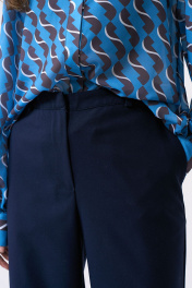 Брюки полупригающего силуэта заужены к низу, с карманами. Брюки на притачном поясе с застёжкой на молнию и крючок. Возможно отличие фотографии по оттенку, связанное с разной цветопередачей монитора.