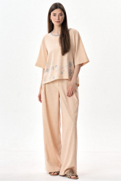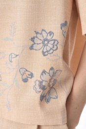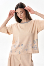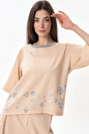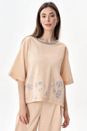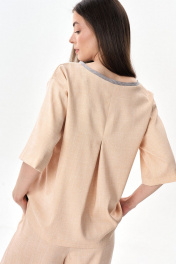 Блуза свободного кроя со складкой на спинке. Рукав втачной, свободный. Горловина круглой формы. Возможно отличие фотографии по оттенку, связанное с разной цветопередачей монитора. Длина спинки 60.5, 60.5, 61, 62, 62.5, 63 Ширна изд на уровне проймы 52, 54, 56, 58, 60, 62