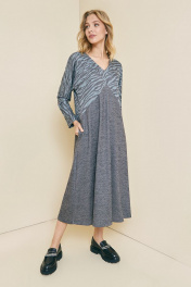 Платье полуприлегающего силуэта с подрезами. Горловина V-образной формы. рукав длинный цельнокроеный. Если у вас ещё нет трикотажного платья, вы попали на нужную страницу. В коллекциях Art Ribbon всегда есть уютные, трикотажные вещи. Их выбирают женщины, которые заботятся о своём комфорте. Для них немаловажным фактором является наличие в гардеробе мягких, натуральных тканей. Принт зебра вносит в образ определённый шарм, а приглашённый оттенок не надоедает, даже если надевать такое платье часто. Возможно отличие фотографии по оттенку, связанное с разной цветопередачей монитора. Длина по центру спинки : , 119см., 119см., 119см., 119см. По груди : , 50см., 52см., 54см., 56см. По бедрам : , 53см., 55см., 57см., 59см. Длина рукава : , 65см., 65см., 65см., 65см. Ширина рукава : , 19.3см., 20см., 20.7см., 21.4см.