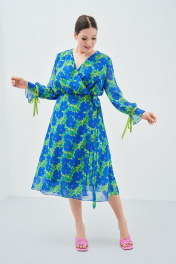 Не ждите повод для цветов и красивого платья - создавайте этот повод самостоятельно вместе с ярким платьем от ArtRibbon. Платье полуприлегающего силуэта, рукав втачной с декоративными завязками. Горловина V- образной формы. Платье с застежкой на запах, фиксируется поясом. Изделие на подкладке. Возможно отличие фотографии по оттенку, связанное с разной цветопередачей монитора. Длина по центру спинки : , 118см., 118см., 118см., 118см. По груди : , 53см., 55см., 57см., 59см. Длина рукава : , 59см., 59см., 59см., 59см. Ширина рукава : , 16.8см., 17.5см., 18.2см., 18.9см., 19.6см