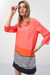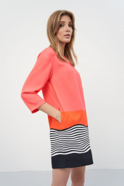 Платье прямого силуэта, рукав спущенный, длиной 3\4. Горловина круглой формы, застежка центральная на спинке на петлю и пуговицу. Возможно отличие фотографии по оттенку, связанное с разной цветопередачей монитора.