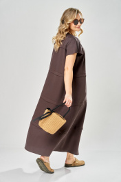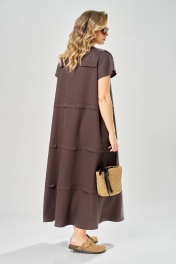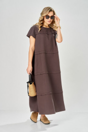 Шоколадный миди — это про уверенность, спокойствие и безупречный вкус. А-силуэт мягко скрывает лишнее и создает летящую походку, которую невозможно не заметить. В этом платье только: идеальная геометрия кроя, глубокий «вкусный» оттенок, ваша естественная красота. Платье без подкладки длинной миди, выполнено из текстильной ткани. Вырез горловины округлой формы. По спинке в верхней части обработан разрез, застегивающийся на одну навесную петлю и пуговицу. Рукава короткие, в верхней части обработан разрез. Спинка и перед платья состоит из 4 воланов, в шов соединения вставлены рюши.