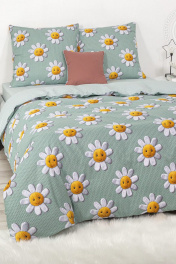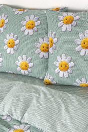 «Смайл» – постельное белье с ромашками для украшения детской. Комплект выполнен из натуральной ткани бязь и дополнен цветочными мотивами. Здесь россыпь улыбчивых ромашек, выполненных с эффектом объемной вязки. Красочный дизайн дарит положительные эмоции и создает обстановку комфорта. Размер: 1,5-спальный Материал: Бязь. Состав: Хлопок 100%. Плотность ткани: 120 гр./м.кв. Пододеяльник: 1 шт. - 215*143; Простыня: 1 шт. - 220*150; Наволочка: 2 шт. - 70*70;