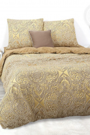 Плотность ткани, г/м.кв. 115 (+5); Размер пододеяльника, см 145*215; Простыня на резинке нет; Размер простыни, см 150*215; Размер наволочки, см 70*70; Комплектация: 1 пододеяльник, 1 простыня, 2 наволочки; Особенности отделки: пододеяльник с карманом, наволочки с клапаном, простыня без резинки; Правила ухода: необходима стирка до первого использования, стирка при t не выше 40С, моющими средствами для цветного (не универсальными), обычная барабанная сушка, отбеливание запрещено, химчистка запрещена. «Императрица» – образ роскоши и величия. Для постельного белья из поплина выбрана необычная дизайнерская концепция. Золотые переливы, градиентные переходы, изящные и утонченные узоры, – всё это делает комплект ярким, эффектным, стильным. Изысканное украшение королевской спальни!