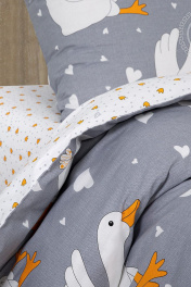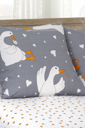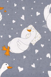 Плотность ткани, г/м.кв. 115 (+5); Размер пододеяльника, см 175*215; Простыня на резинке: нет; Размер простыни, см 200*215; Размер наволочки, см 70*70; Комплектация: 1 пододеяльник, 1 простыня, 2 наволочки; Особенности отделки: пододеяльник с карманом, наволочки с клапаном, простыня без резинки; Правила ухода: необходима стирка до первого использования, стирка при t не выше 40С, можно гладить при t подошвы утюга до 200С, обычная барабанная сушка, отбеливание запрещено, химчистка запрещена. Постельное белье с гусями – тренд последних лет. Милые и забавные птички ассоциируются с чем-то очень добрым и домашним и вызывают умиление. На комплекте из поплина веселый рисунок с гусями в нежных оттенках. Здесь птички отдыхают на мягких подушках, читают, о чем-то мечтают и подглядывают друг другу в телефоны. Знакомо, правда? Постельное белье гусь обнимусь – это символ заботы и уюта, а еще отличный подарок на День влюбленных, день рождения, 8 марта и Новый год.