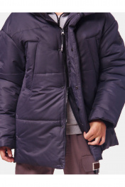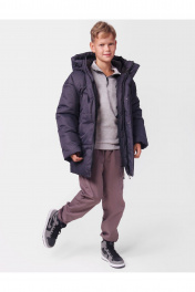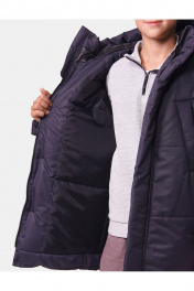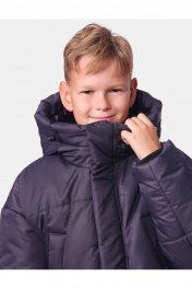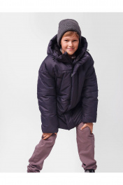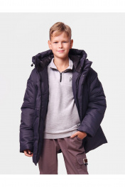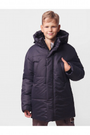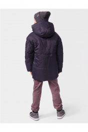 Куртка для мальчика, утепленная. В швах стачивания рельефов переда обработаны карманы, которые застегиваются на магниты. По входам в карманы установлены закрепки. По переду проложены строчки-стежки. На переде обработаны верхние прорезные карманы с листочками с втачными концами, которые застегиваются на магниты. В шов стачивания верхней и нижней частей спинки, между надсечками, вставлена световозвращающая тесьма. Рукава втачные, двухшовные, с трикотажными напульсниками. Лицевой вырез капюшона стягивается шнуром, который продевается через блочки и фиксируется фиксаторами. Верхняя часть подкладки спинки из флиса. По подкладке переда и верхней части спинки проложены строчки-стежки. Бережная стирка при температуре 30 С