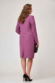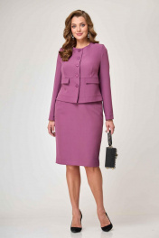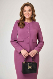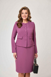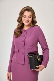 Костюм женский полуприлегающего силуэта, состоит из юбки и жакета. Выполнен из костюмной стрейчевой ткани. Жакет с длинным рукавом по переду центральная застежка. Горловина округлая, Перед с подрезом под грудью, лиф с талиевой и нагрудной вытачками. Из под подреза клапана. Спинка с талиевыми вытачками. Еврообработка внутренних швов. Юбка классическая зауженная к низу, на пояс с резинкой. Застежка на тесьму-молнию в центральном шве заднего полотнища, по низу шлица. Вырез горловины: округлый Силуэт: полуприлегающий Длина жакета: 54 (±1) см. Длина юбки: 60 (±2) см. Рукав: длинный Длина рукава: 62 (±1) см. Статус модели: повседневный Вид застёжки жакет: центральная на пуговицы Вид застёжки юбка: на тесьму-молнию Цвет: аметист Объем груди: размер 48 – 102 (±2) см. размер 50 – 106 (±2) см. размер 52 – 110 (±2) см. Объем талии жакет: размер 48 – 96 (±2) см. размер 50 – 100 (±2) см. размер 52 – 104 (±2) см юбка: размер 48 – 80 (±2) см. размер 50 – 84 (±2) см. размер 52 – 88 (±2) см. Объем бедер: размер 48 – 104 (±2) см. размер 50 – 108 (±2) см. размер 52 – 112 (±2) см. Ширина рукава под проймой: размер 48 – 17 (±1) см. размер 50 – 18 (±1) см. размер 52 – 19 (±1) см. Ширина спинки: 40 (±0,5) см