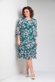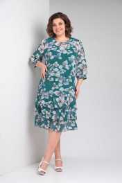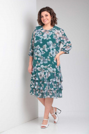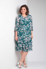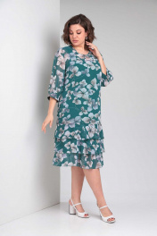 Платье женское нарядно-повседневное, свободного силуэта, выполнено из шифона. Горловина округлая, застежка на спинке на "капельку", с петлей и пуговицей. Рукава три четверти, вверху сборка, по низу расширение на манжет с частичным присбориванием на резинку. Перед с нагрудными вытачками, спинка свободная. По низу платья три яруса воланов покроя "клеш". Коллекция весна-лето 2024 Рост 164 см. Цвет зеленый Размерный ряд 52-56 Тип ткани шифон Вид изделия платье Рукав 3/4 Состав ПЭ-100% Сезон весна-лето Вырез горловины круглый Длина изделия 108,00 (±2) см. Длина рукава 45 (±1) см. Статус модели нарядно-повседневный Силуэт свободный Объём груди размер 52 – 112 (±2) см. размер 54 – 116 (±2) см. размер 56 – 120 (±2) см. Объём талии размер 52 – 110 (±2) см. размер 54 – 114 (±2) см. размер 56 – 118 (±2) см. Объём бёдер размер 52 – 116 (±2) см. размер 54 – 120 (±2) см. размер 56 – 124 (±2) см. Ширина рукава под проймой размер 52 – 20.5 (±2) см. размер 54 – 21.5 (±2) см. размер 56 – 22.5 (±2) см. Ширина спинки 38,0 (±2) см.