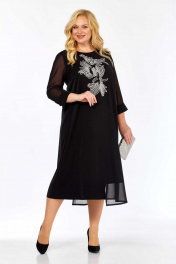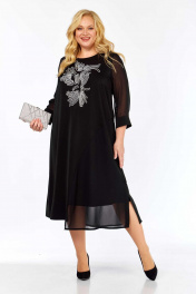 Платье женское полуприлегающего силуэта. По переду и спинке платья кокетки. От центра переда и спинки к левому боковому шву выполнен подрез с декоративной планкой. Платье украшено вышивкой. Рукав втачной, по низу на манжете. Длина изделия 121 (±2) см. Длина рукава 48 (±1) см. Объём груди размер 56 – 120(±2) см. размер 58 – 124 (±2) см. размер 60 – 128 (±2) см. Объём талии размер 56 – 128 (±2) см. размер 58 – 132 (±2) см. размер 60 – 136 (±2) см. Ширина рукава под проймой размер 56 – 20 (±2) см. размер 58 – 21 (±2) см. размер 60 – 22 (±2) см.
