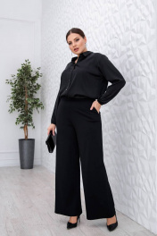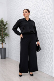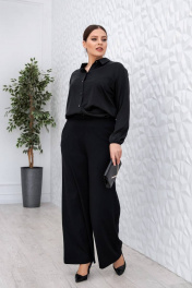 Длина изделия по боковому шву: 100 см Брюки прямые с застежкой на потайную молнию и пуговицу в боковом шве. По переду карманы с отрезным бочком, по спинке резинка по поясу.