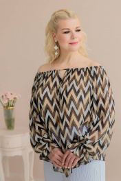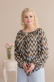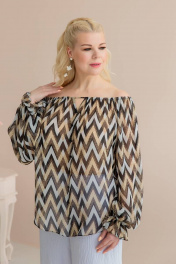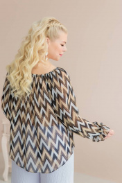 Длина изделия по спинке: 62 см Блуза прямого силуэта с длинным широким рукавом с имитацией манжеты. Горловина расширенная с резинкой. По переду декоративный шов с пуговицами.