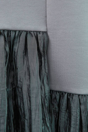 Платье комбинированное (трикотажный нейлон и жатая тафта), силуэта трапеция с рукавом 3/4. Горловина округлая. Застежка на тесьму молнию по среднему шву спинки. Перед с вертикальным рельефом и щелью. 48 ог-50см, об-54см, длина 96см 50 ог-52см, об-56см, длина 96см 52 ог-54см, об-58см, длина 96см 54 ог-56см, об-60см, длина 96см 56 ог-58см, об-62см, длина 98см 58 ог-60см, об-64см, длина 98см По длине могут быть отклонения в 2 см
