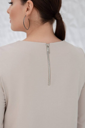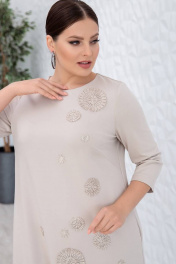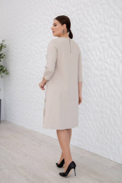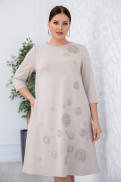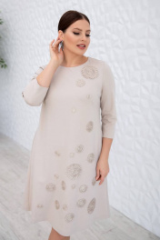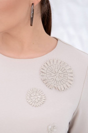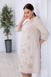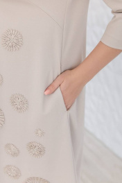 Платье силуэта трапеция с рукавом ¾. Горловина округлая. Застежка на тесьму молнию по спинке. По переду декоративная аппликация, карманы в боковых швах.