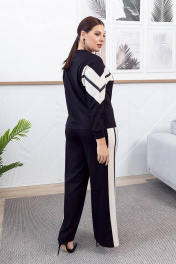 Прямые брюки из вискозы с резинкой и контрастными вставками ASV 2645 черно-бежевый