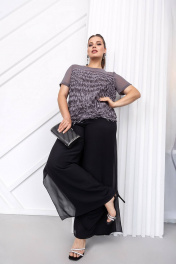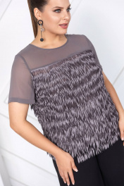 Классическая нарядная блуза из текстиля с рельефами и бахромой ASV 2740 серый