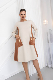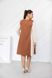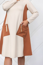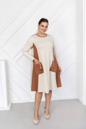 Платье трапеция с рельефами, длинный рукав ASV 2768 бежево-коричневый