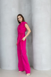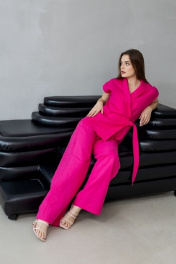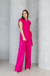 Летний костюм из льна с жилетом на запах и брюками палаццо Atelero 1001 розовая_фуксия