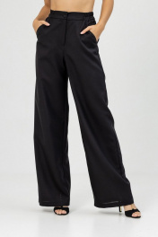Брюки палаццо из текстиля и шерсти с карманами и высоким поясом Atelero 1023Ш черный
