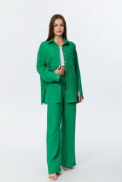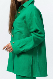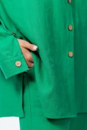 Летняя рубашка из льна со спущенным плечом и карманами Atelero 1057 зеленый