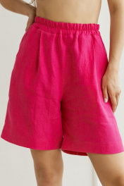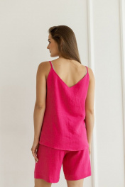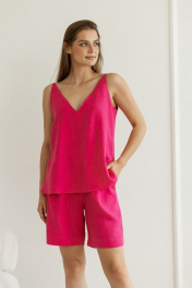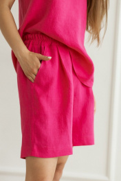 Летний леновый костюм топ и шорты на резинке Atelero 1073 фуксия