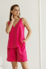 Летний леновый топ с глубоким вырезом и свободной посадкой Atelero 1080 фуксия