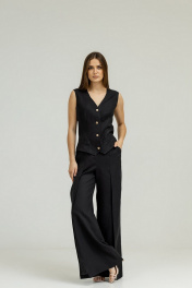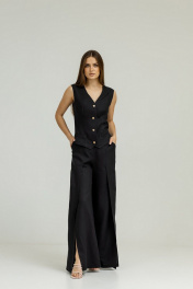 Черный комплект из льна с брюками палаццо и жилетом Atelero 1102Ч черный