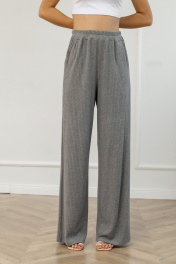 Брюки выполнены из мягкого и очень приятного вискозного трикотажа. Брюки высокой посадки,прямого кроя,с карманами в боковых швах,по талии на резинке.