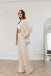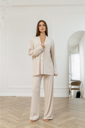 Повседневный комплект из мягкого трикотажа с брюками и кардиганом Atelero 1111 бежевый