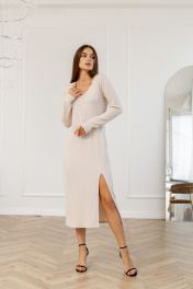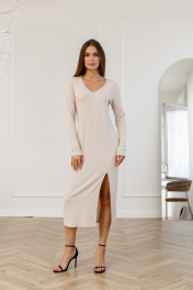 Длинное бежевое платье прямого силуэта из трикотажа Atelero 1114 бежевый