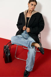 Жакет прямого свободного кроя. С имитацией худи с капюшоном, застежка молния. Жакет однобортный, по переду застежка на пуговицы. По бокам функциональные карманы. Жакет на подкладке. Длина по спинке 76 см.