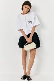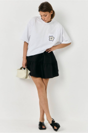 Юбка с воланами, на резинке, выполнена из льна, в черном цвете.