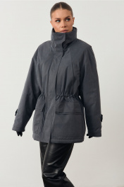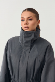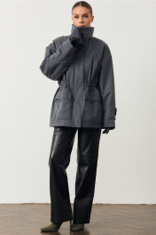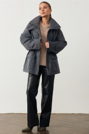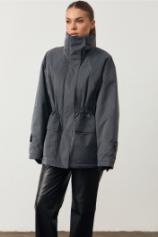 Женская куртка с высоким воротом. На поясе кулиска. Изделие прямого кроя. Длина изделия 74см; Длина рукава 75см.