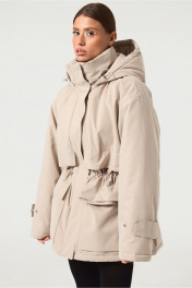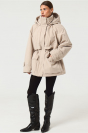 Утепленная женская куртка с капюшоном. Застежка на молнию и кнопки. По переду изделия карманы