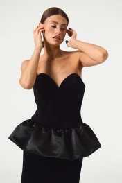 Топ, выполнен в корсетном стиле из хлопковой ткани с перламутровым напылением. По спинке застежка на разъемную металлическую молнию