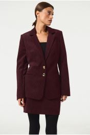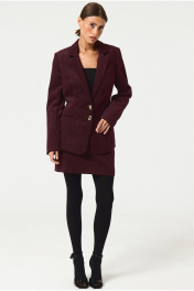 Жакет полуприлегающего силуэта, удлиненный. По переду функциональные карманы с обтачкой. Застежка на 2 пуговицы. Воротник с отложными лацканами, длинный рукав, на подкладке. Разрезов на спинке нет. Рельефы по переду и по спинке. Юбка в длине мини с застежкой на молнию