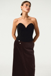 Топ, выполнен в корсетном стиле из хлопковой ткани с перламутровым напылением. По спинке застежка на разъемную металлическую молнию