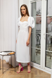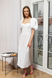 Платье миди белое с рукавами буфы в нарядном стиле AURA otd 3190