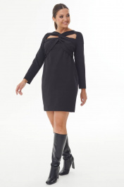 Платье с перекрутом и рукавами из трикотажа и хлопка AURA otd 3218 черный