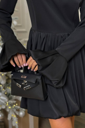 Платье в длине мини. Силуэт прямой, застёжка - пайная молния. Юбка и манжеты притачные, широкие, пышные, собраны в пышные сборки, обработаны подкладкой. Юбка по силуэту баллон, создает романтичный образ.